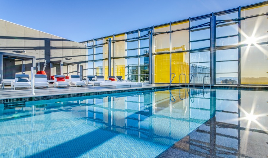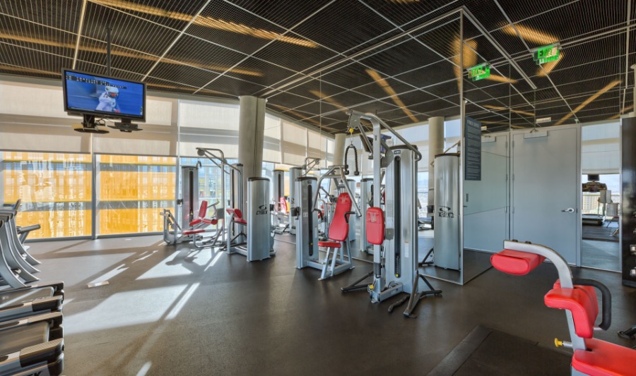 Available to you are the conference center, cabanas, gym, tram access, hot tub, infinity pool on rooftop, media room, spa, steam room, and sun deck.